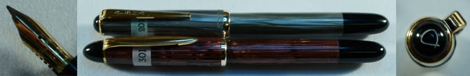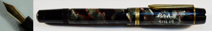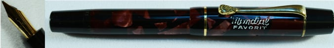 Zelluloid ähnlich dem einiger Soenneckens (506) allerdings handelt es sich um einen Druckknopf-Füller. Bestückt ist die EFCA mit einer Soennecken-Feder.
